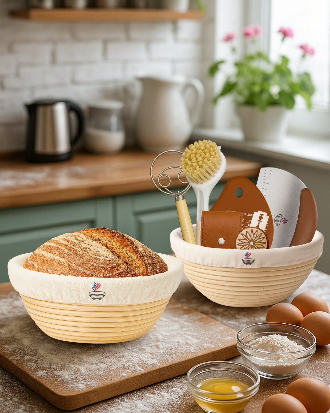 Flavorae Banneton Bread Proofing Basket with Liner for Sourdough Baking, Natural Rattan Dough Riser for Homemade Artisan Bread – Round 9 Inch Sourdough Starter Kit