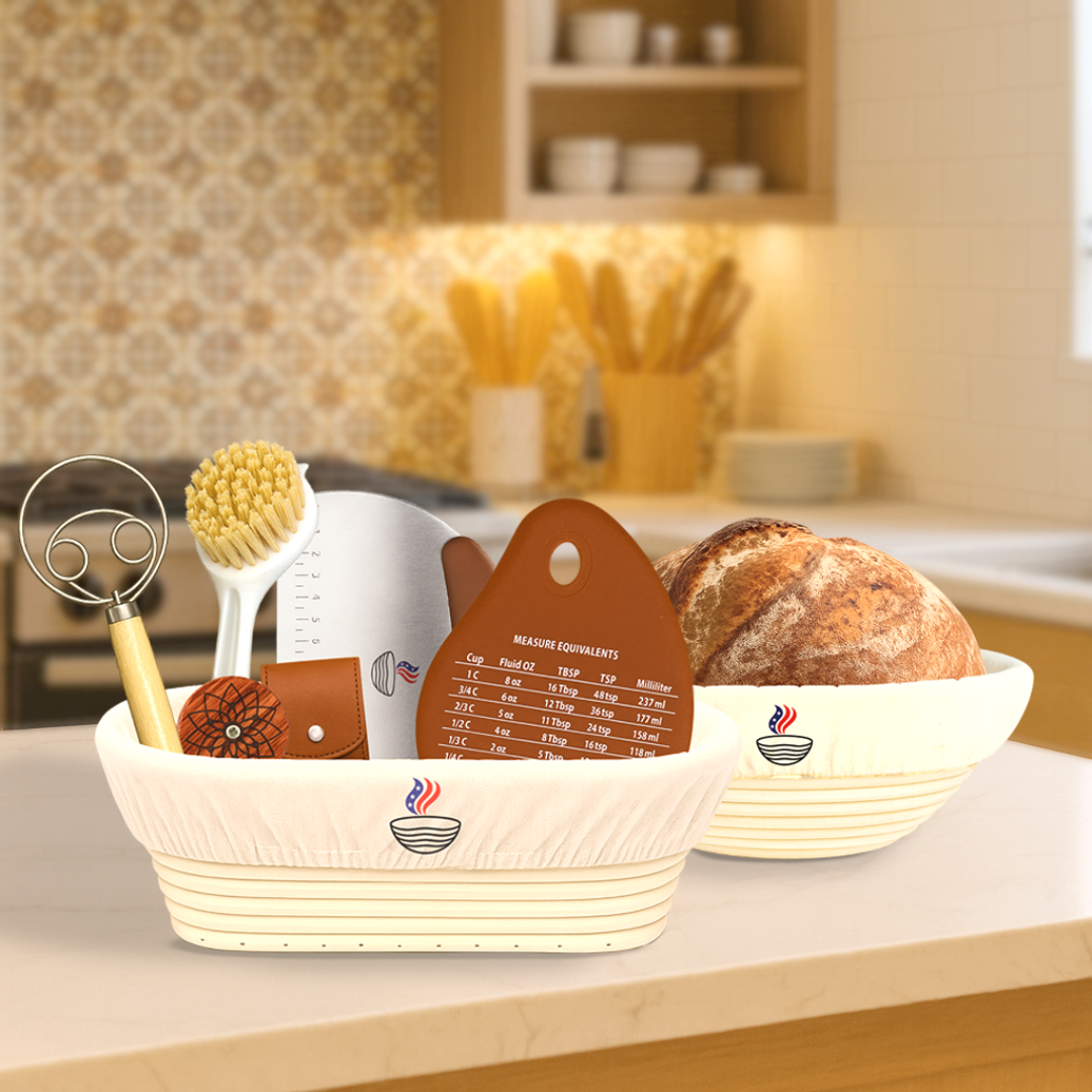 Bread Proofing Basket Set of 2 – Round 9” & Oval 10” Banneton with Liners, Sourdough Starter Kit, Natural Rattan Dough Proofing Baskets for Artisan Bread Baking