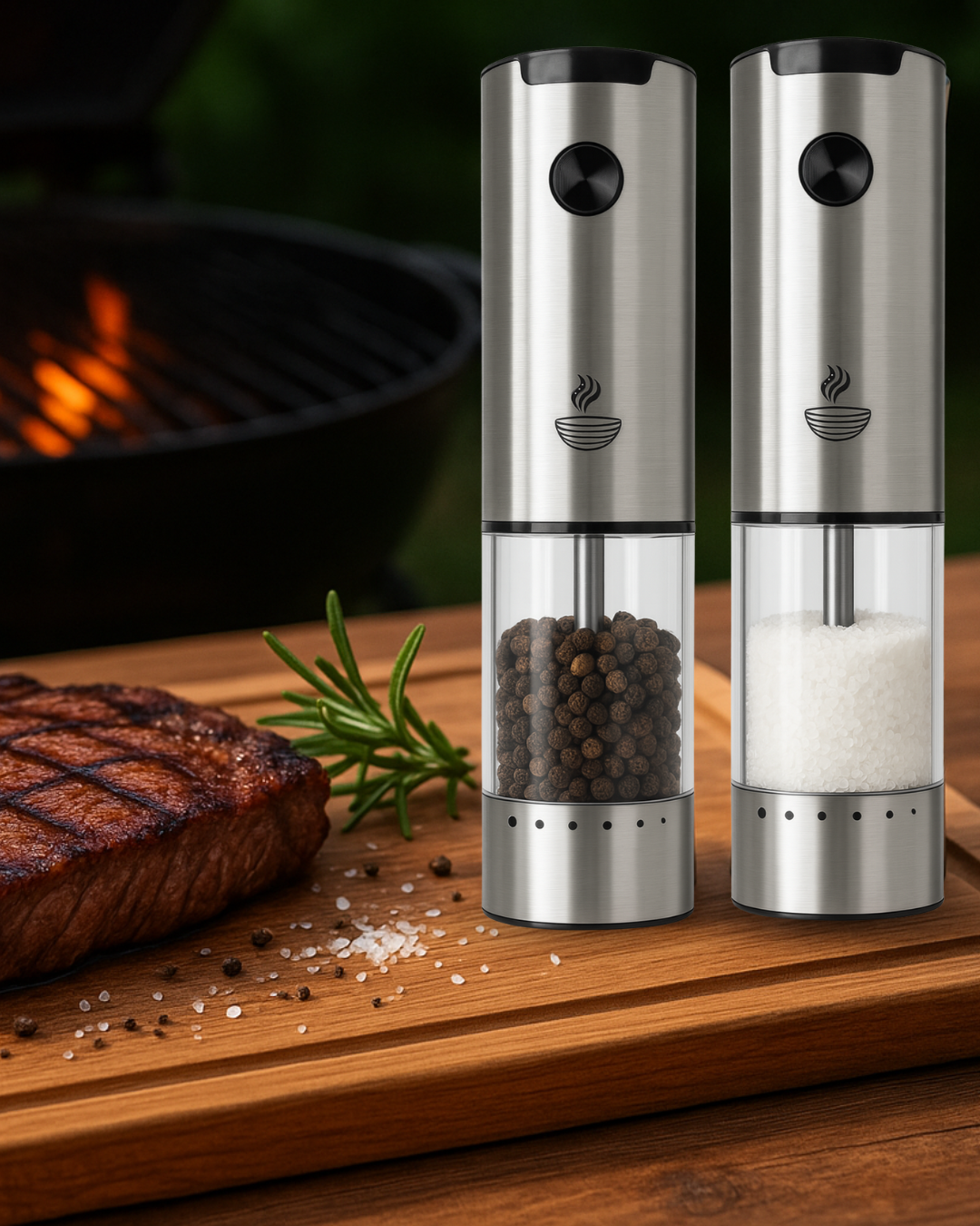 Electric Salt and Pepper Grinder Set - Automatic Battery Pepper Mill Shakers - Upgraded Adjustable Coarseness with Led & Large Capacity - Built-in LED Light - 2 Pack